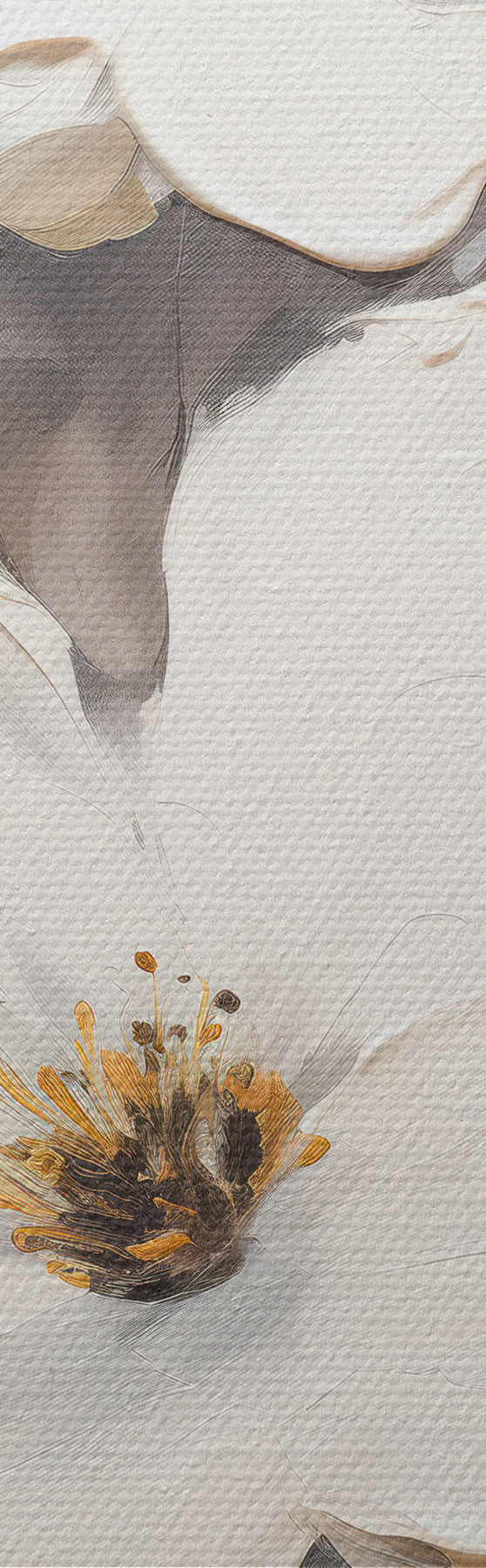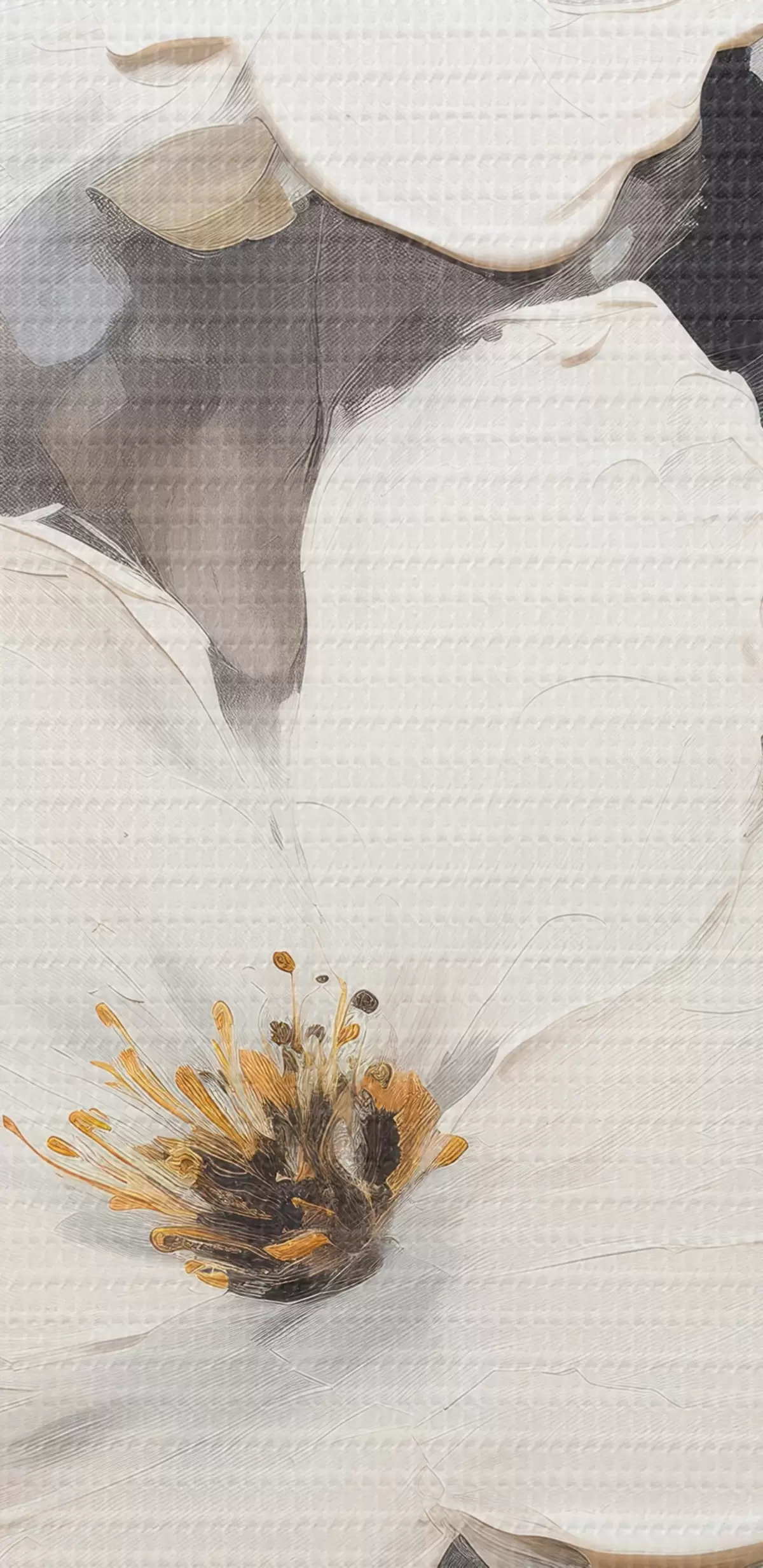 Obraz Umělecká kompozice s bílými květy a texturovaným povrchem v minimalistickém stylu Č. m00574