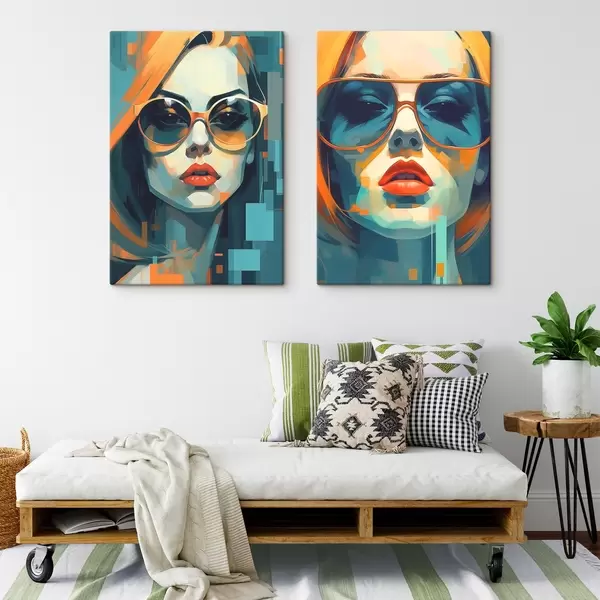 Obraz Portréty žen v brýlích ve stylu digitální abstrakce Č. m00587
