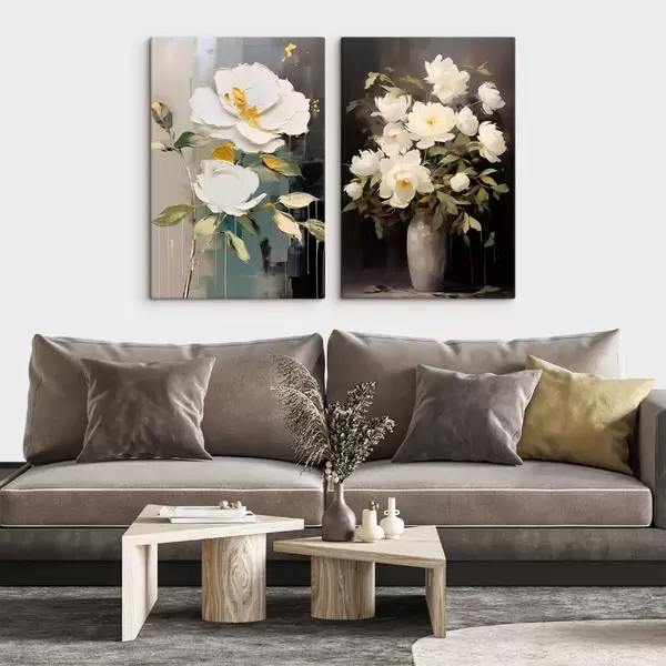 Obraz Bílé pivoňky na tmavém pozadí: dekorativní kompozice Č. m00634