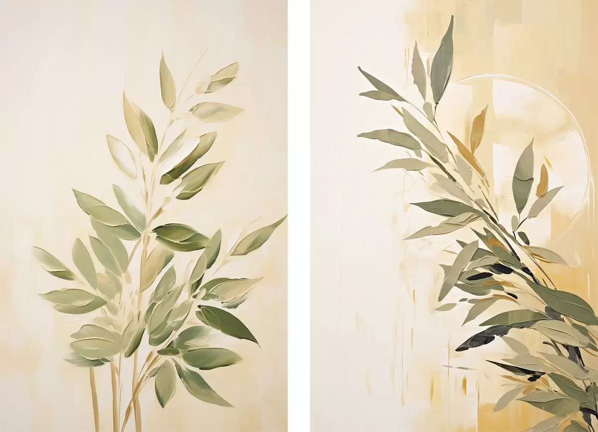 Obraz Botanická větev se zelenými listy na teplém pozadí Č. m00686