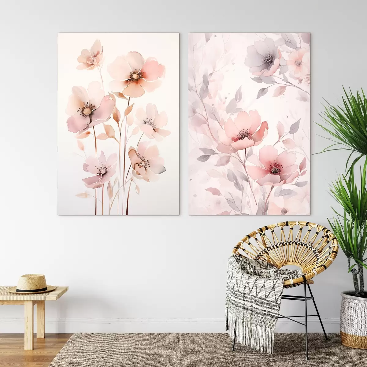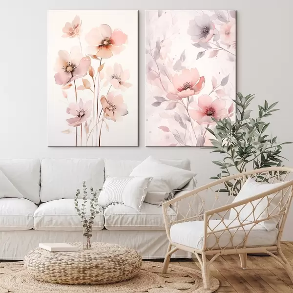 Obraz Akvarelové růžové květy na tenkých stoncích Č. m00690