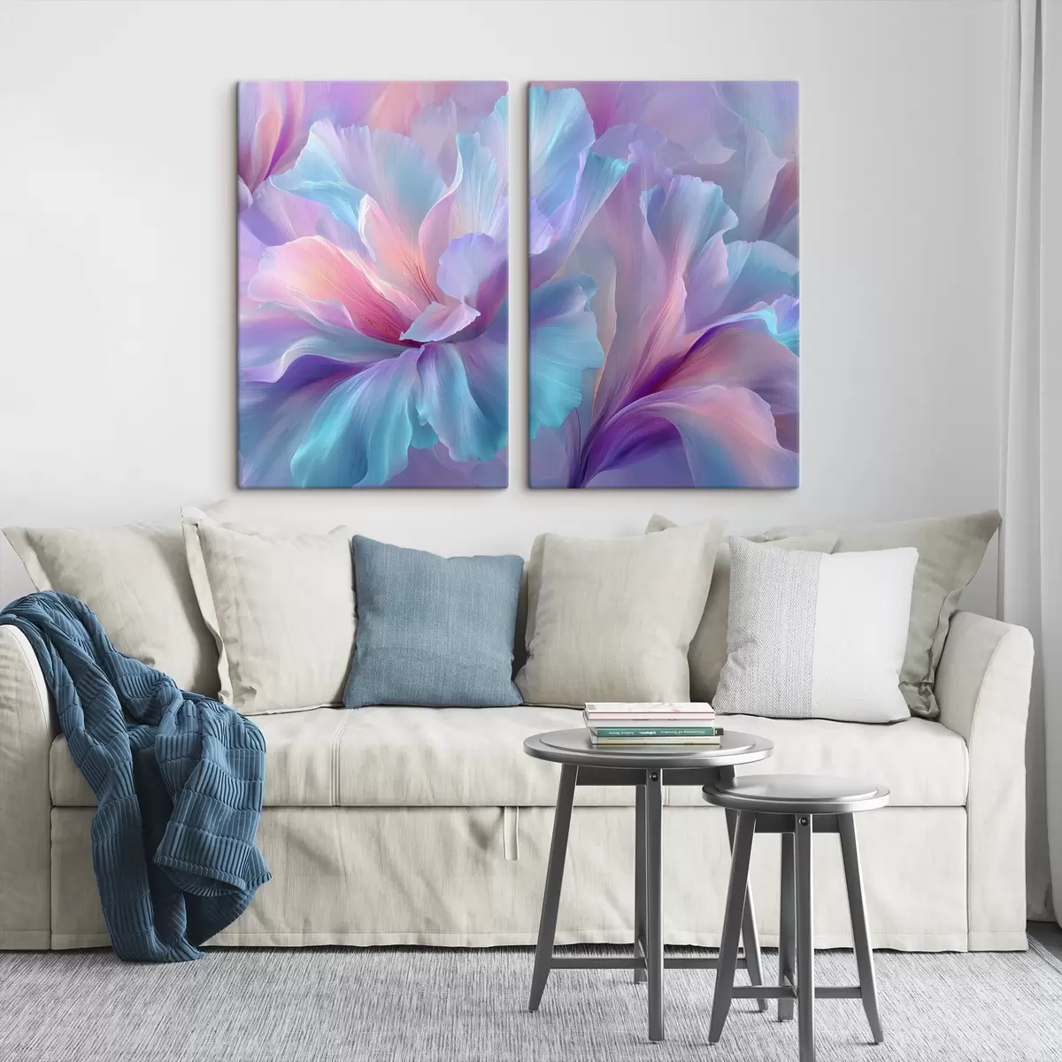 Obraz jemná fantazie květiny s okvětními lístky v odstínech fialové, modré a růžové. Č. m00700