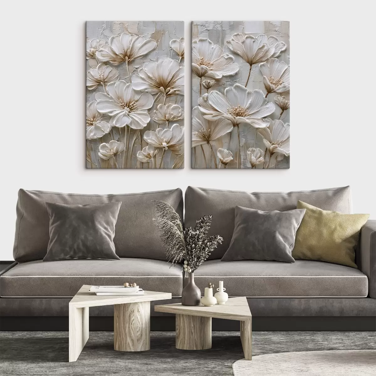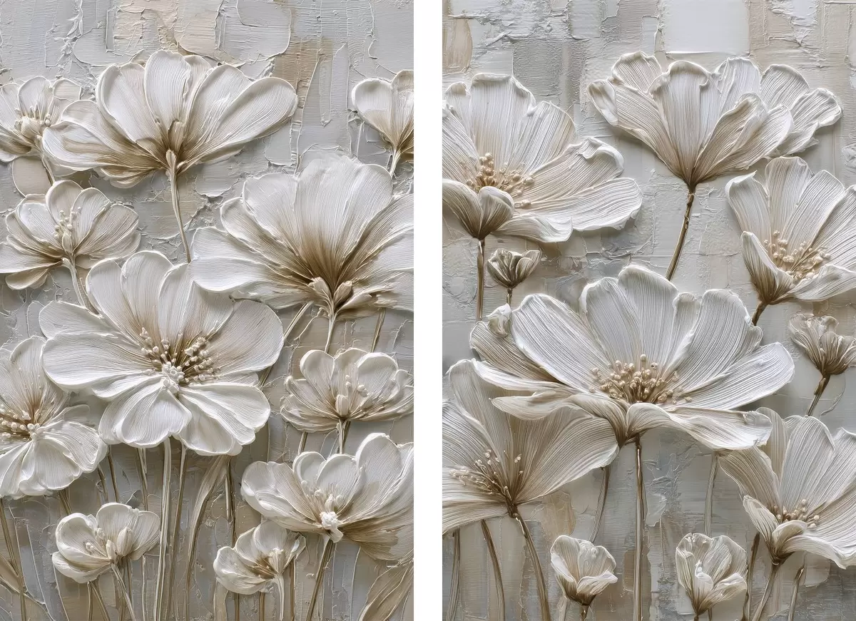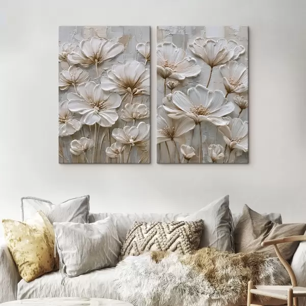 Obraz krémové květiny s imitací impasto stylu Č. m00701
