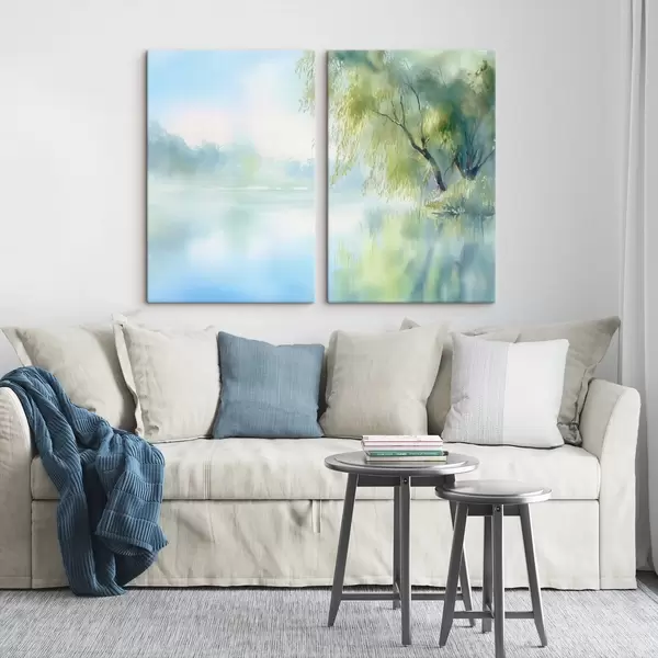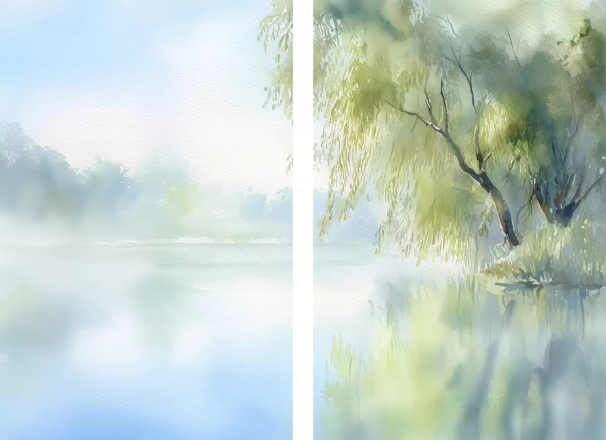 Obraz vrba na břehu jezera v akvarelovém stylu Č. m00702