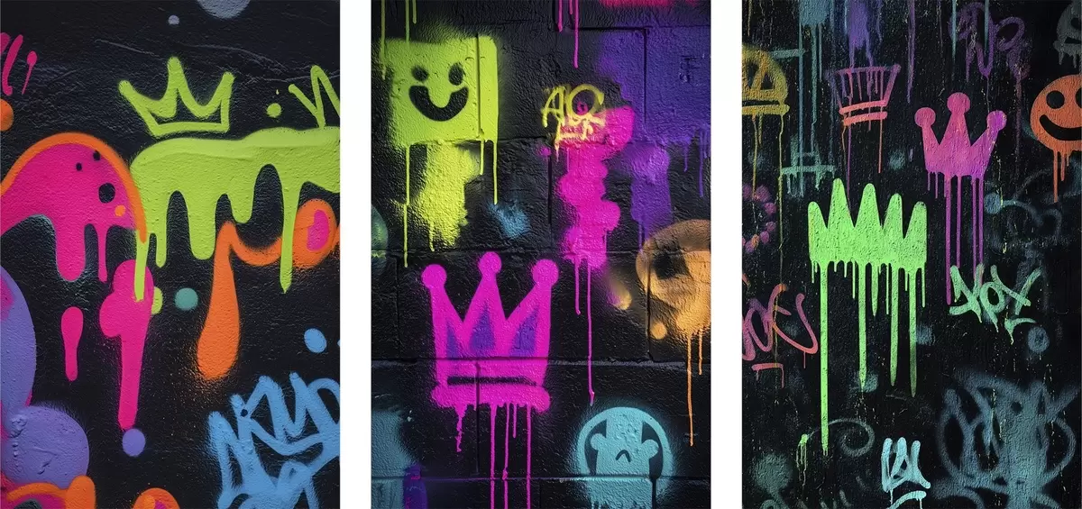Obraz jasné pouliční graffiti na tmavém pozadí Č. m00703
