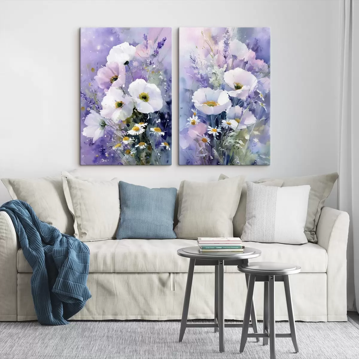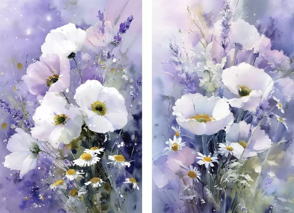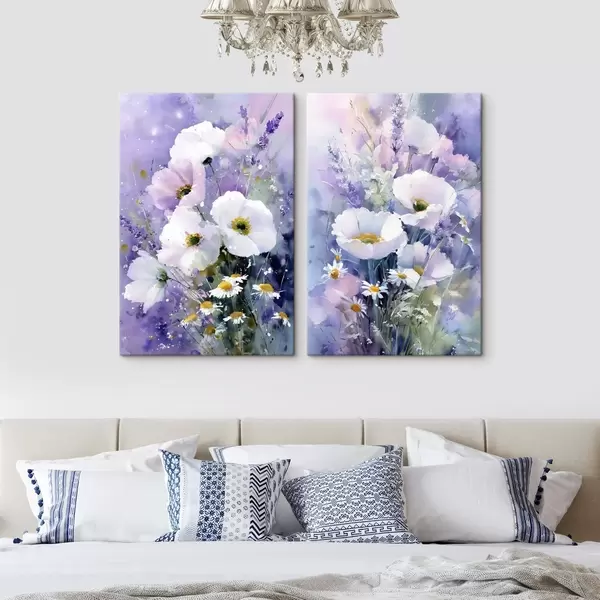Obraz akvarelová kytice v lila a bílých tónech Č. m00704