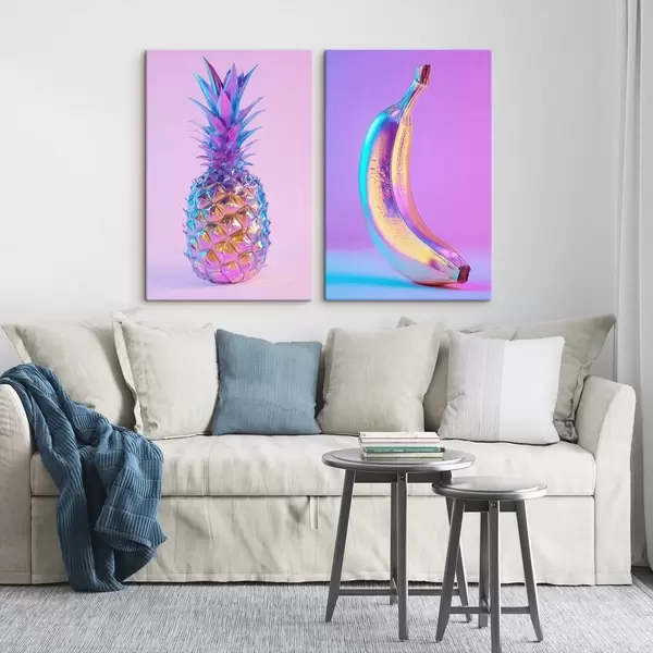Obraz jasný lesklý ananas a banán ve stylu pop artu Č. m00737