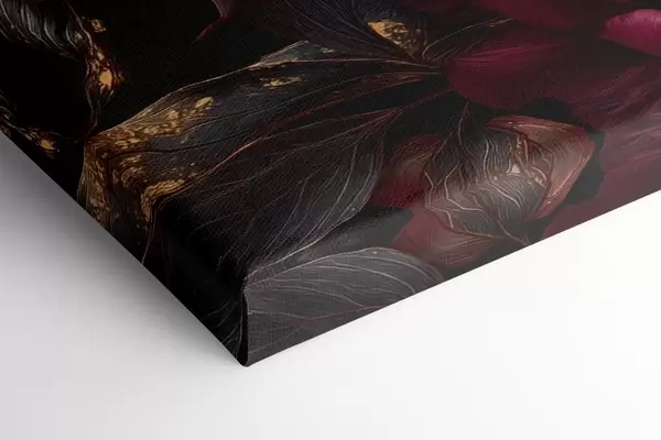 Obraz Burgundské pivoňky a silueta s měsíční hlavou na černém pozadí Č. m00765