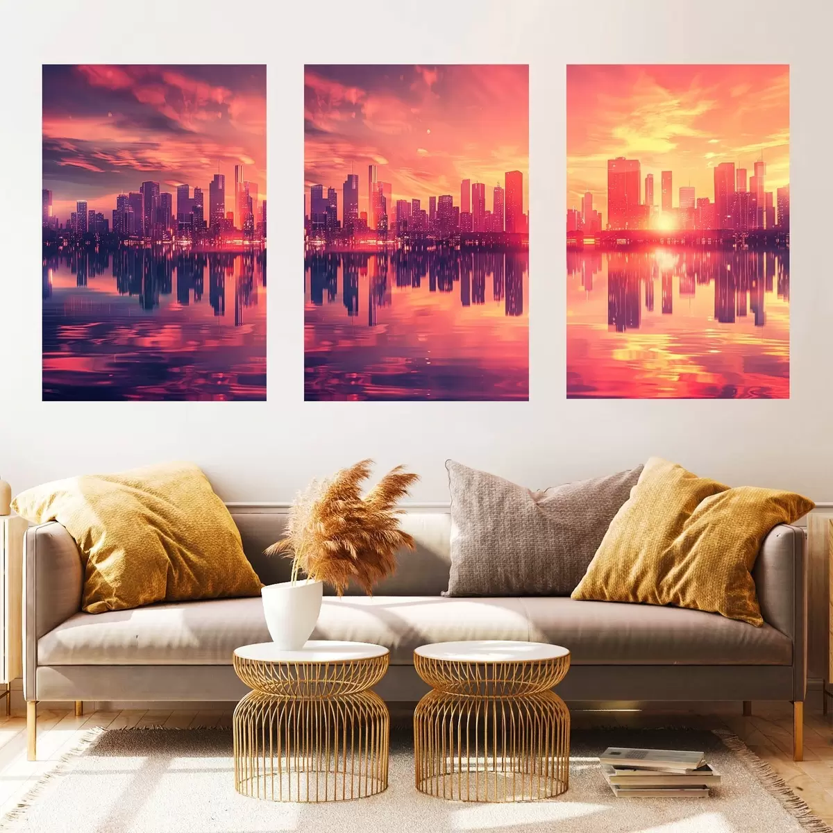 Obraz Romantický západ slunce s moderním městem v pozadí Č. m00784