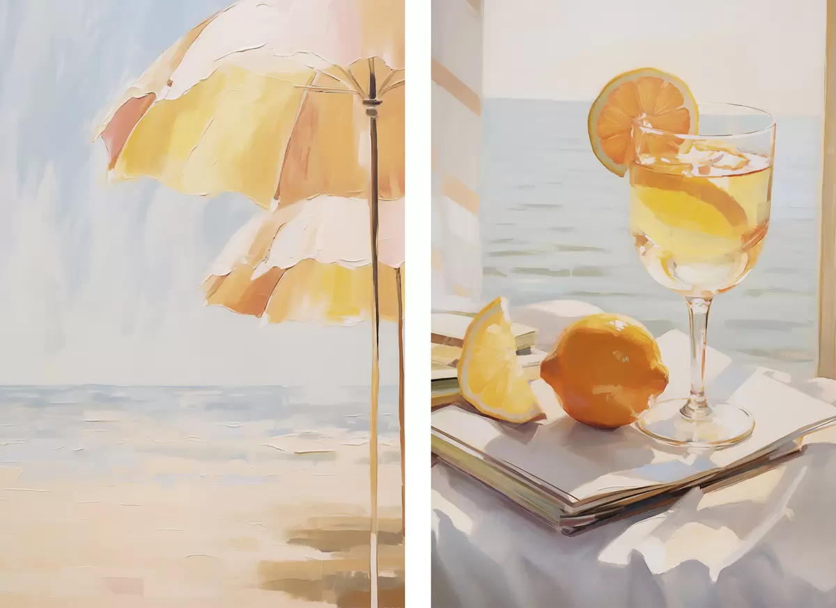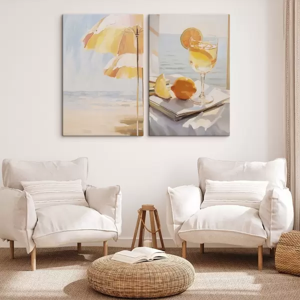 Obraz Plážová krajina a koktejl ve sklenici Č. m00793