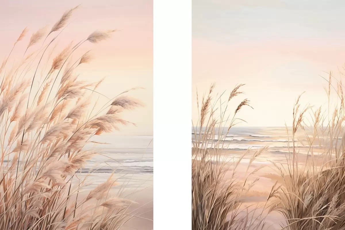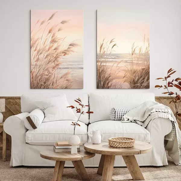 Obraz Pampová tráva v pastelových oranžových barvách, světle růžová obloha, klidná krajina Č. m00823