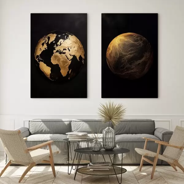 Obraz Texturovaný abstraktní zeměkoule a planeta na černém pozadí, moderní minimalistické umění Č. m00827