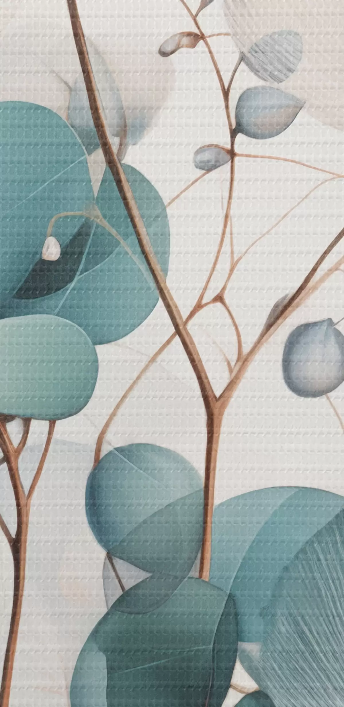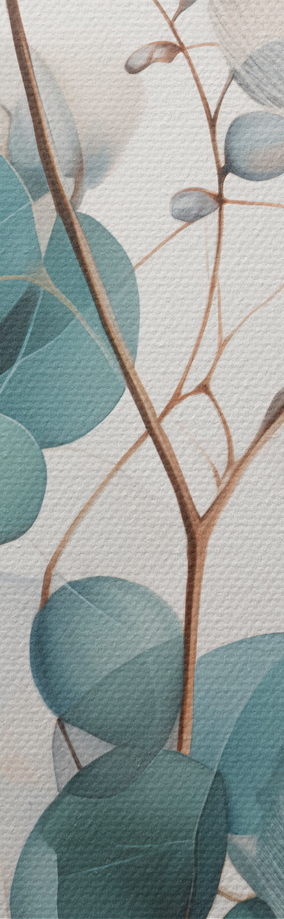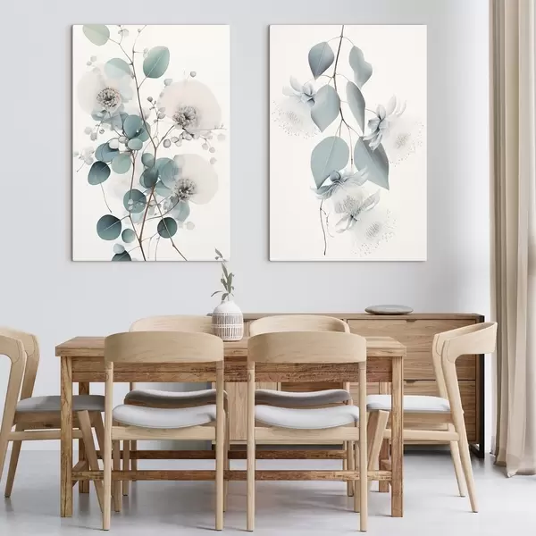 Obraz Eukalyptová větev s modrými listy a bílými květy, světlé pozadí Č. m00829