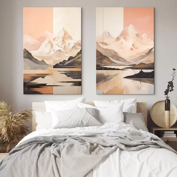 Obraz Abstraktní krajina s horami a jezerem, pastelové barvy, minimalistický styl Č. m00830