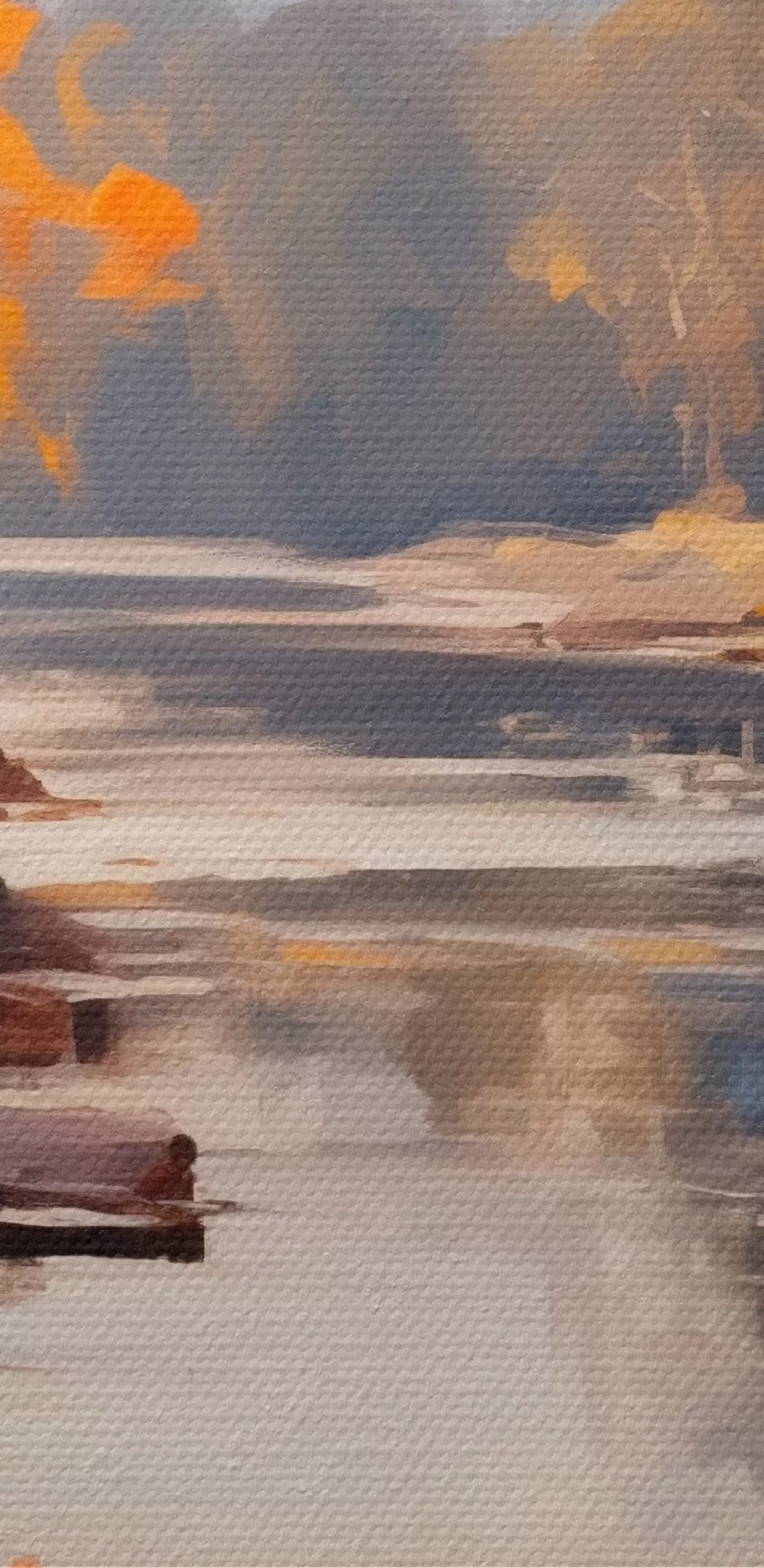 Obraz Podzimní krajina, řeka s stromy na břehu, les v pozadí, odrazy na vodě Č. m00883