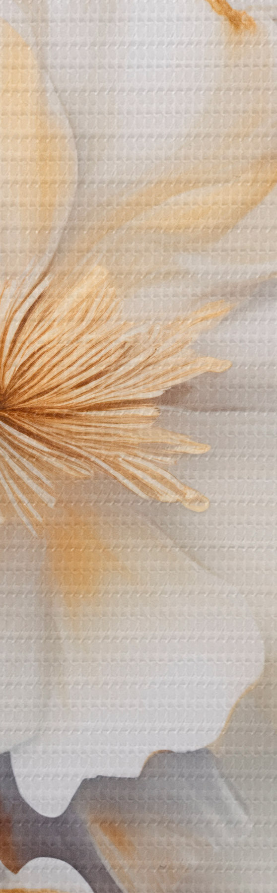 Obraz Bílé květy se žlutými detaily, okvětní lístky s jemnými stíny, světlé pozadí s jemným mramorovým efektem Č. m00889