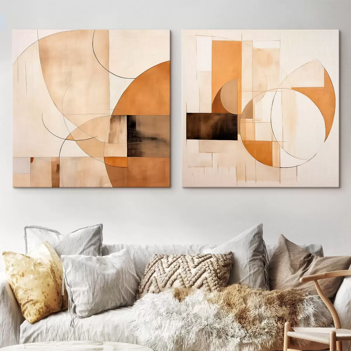 Obraz Moderní abstrakce s kruhy a čarami v barvách kávy s mlékem Č. m00898
