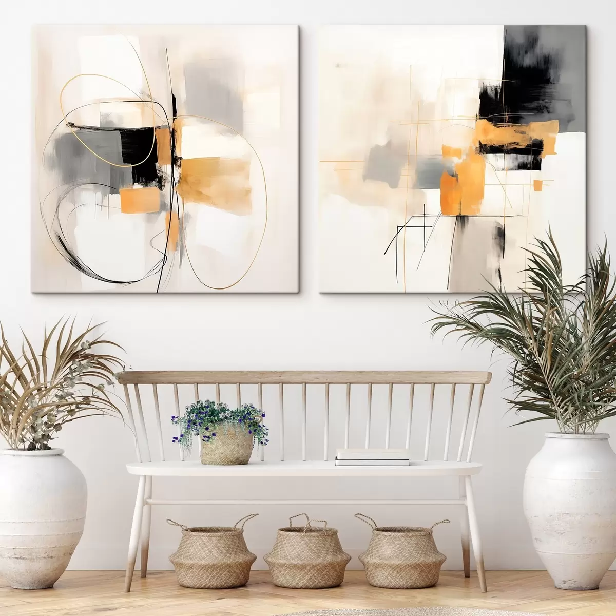 Obraz Abstraktní geometrie, okrová, šedá a černá Č. m00899