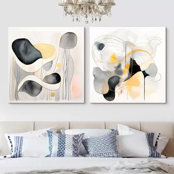 Obraz Monochromatický a žlutý akcent v abstraktním stylu Č. m00905
