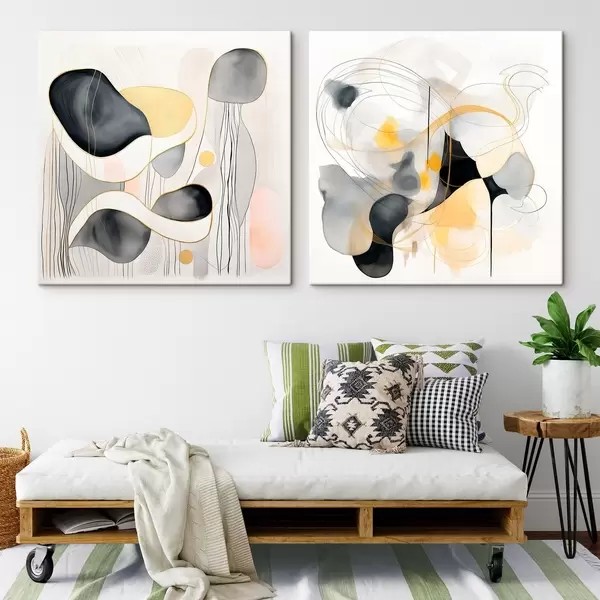 Obraz Monochromatický a žlutý akcent v abstraktním stylu Č. m00905