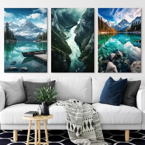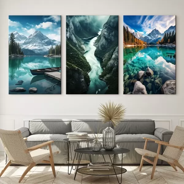 Obraz Alpská jezera a výhledy na fjordy v chladných modrozelených tónech Č. m00961
