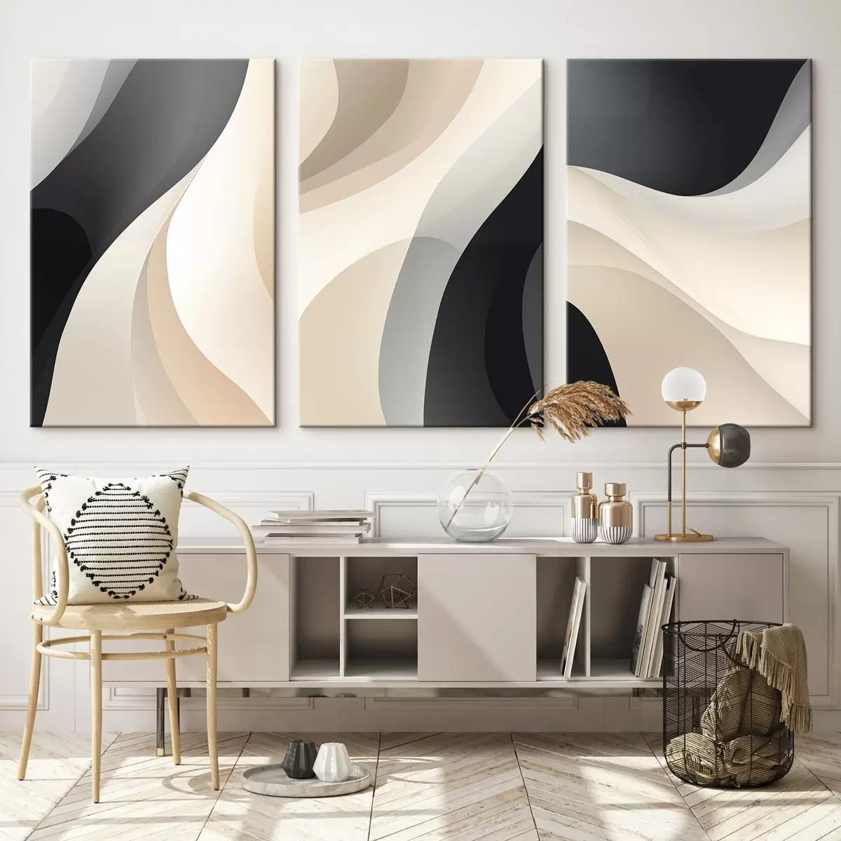 Obraz Minimální plynulé křivky v krémové, šedohnědé a černé barvě Č. m00962