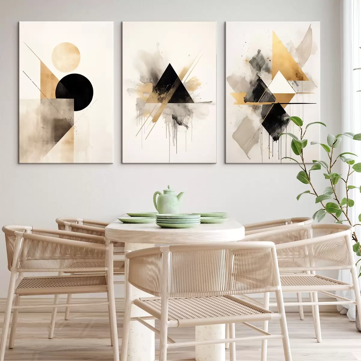 Obraz Geometrické trojúhelníky s rozstříknutou barvou, černá a okrová Č. m00963