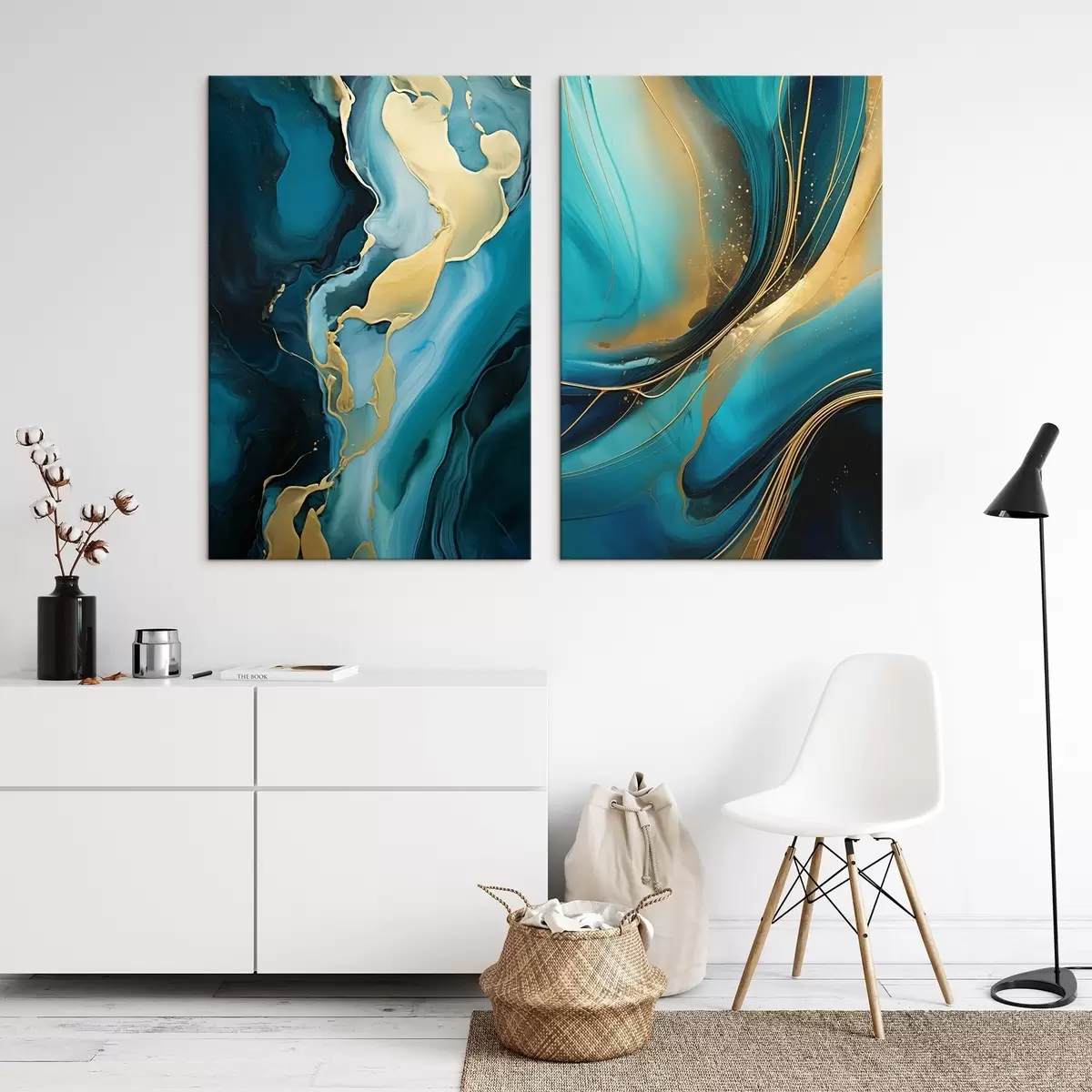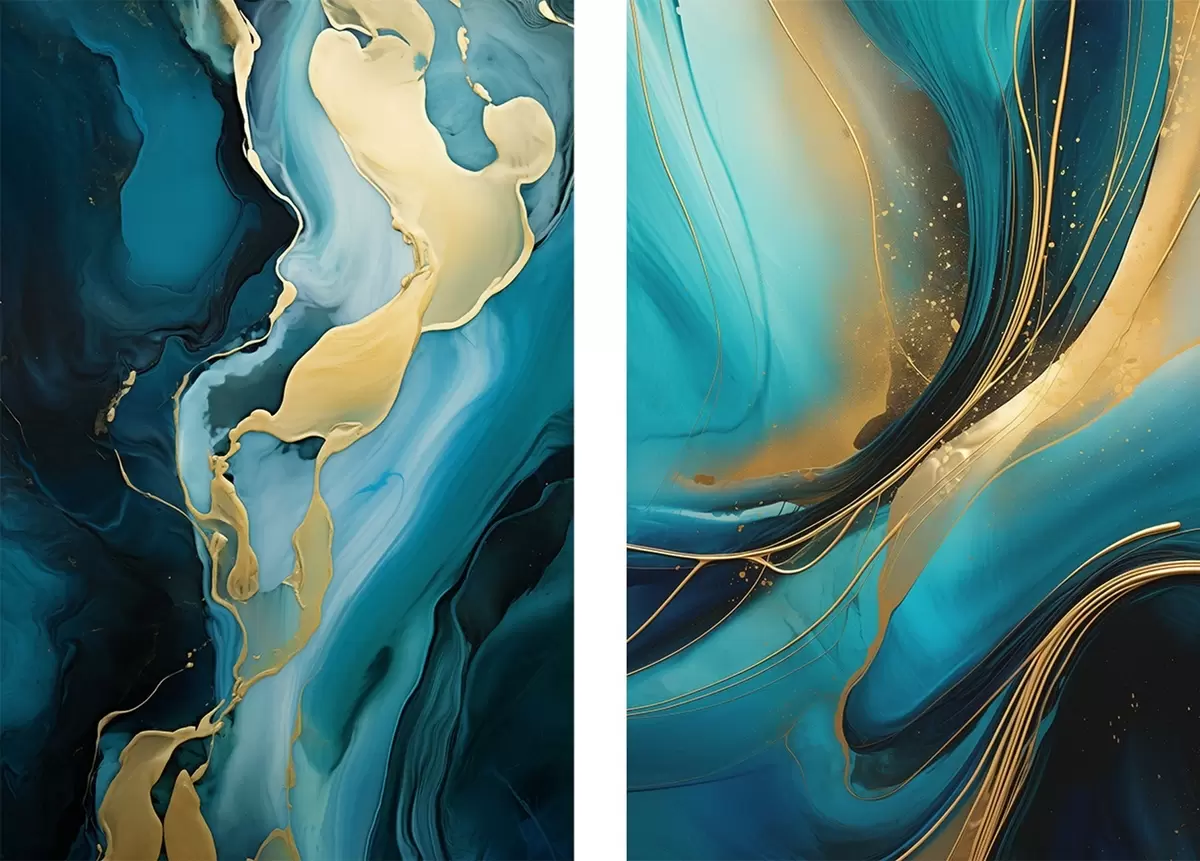 Obraz Tealová tekutá abstrakce s teplými kovovými proudy Č. m00965