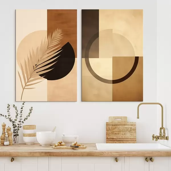 Obraz Terakota a béžová geometrie s motivem palmových listů Č. m00968