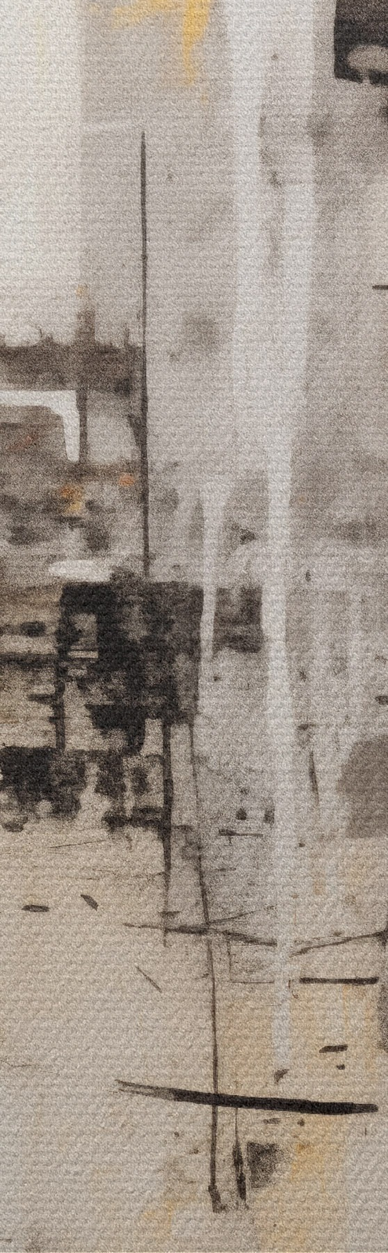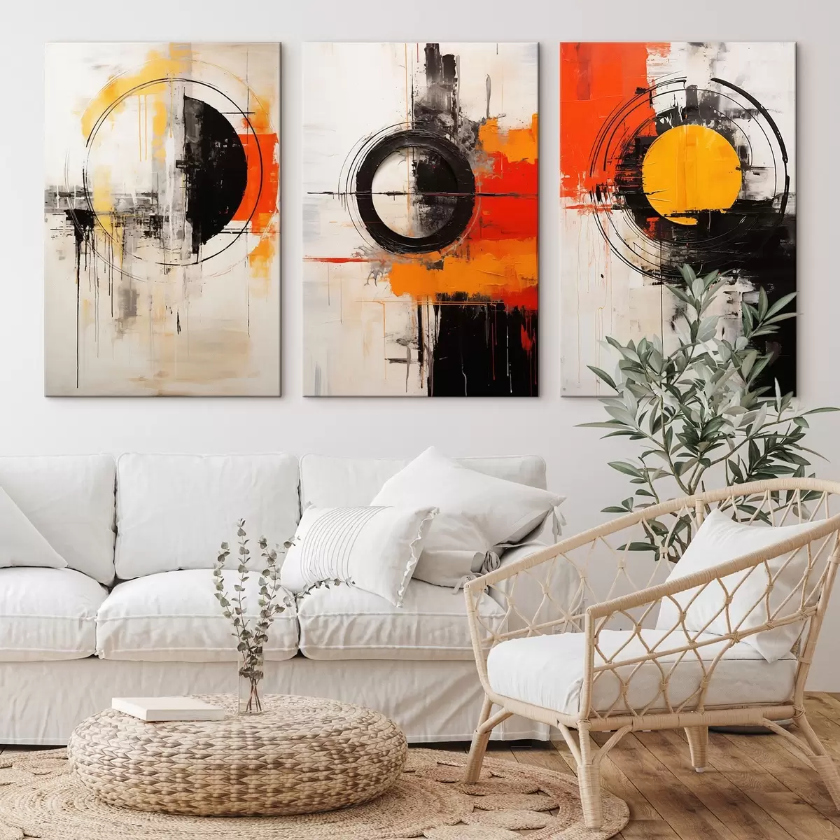 Obraz Texturované kruhy a výrazné tahy v černé, okrové a oranžové barvě Č. m00974