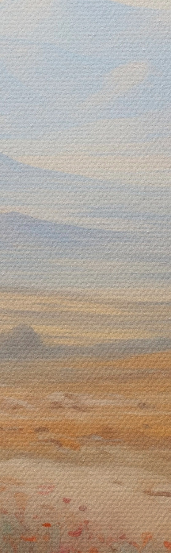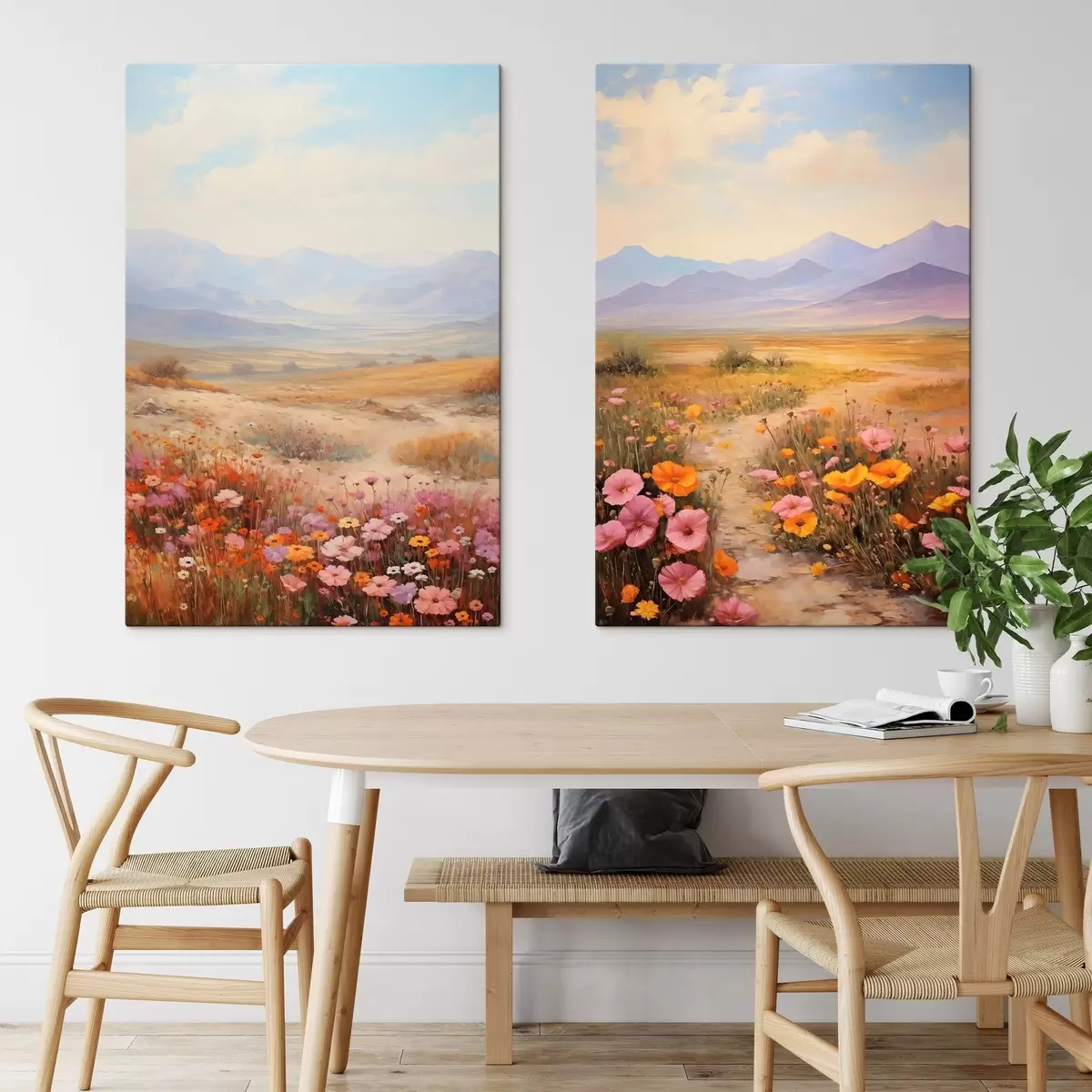Obraz Krajina, pole barevných květin s horami v pozadí, jemné pastelové barvy Č. m01003