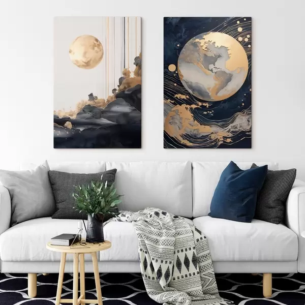 Obraz Texturovaná dekorativní planeta ve vesmíru se žlutými čarami a tečkami, abstraktní styl, minimalistický a moderní Č. m01014