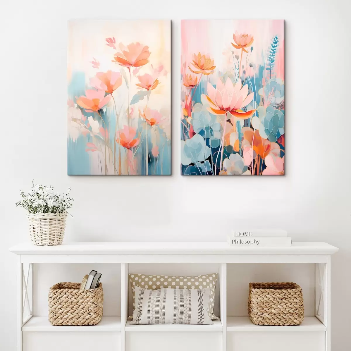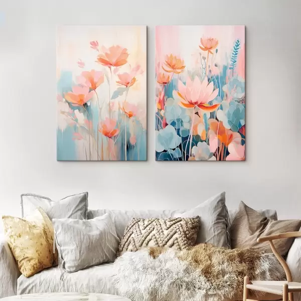 Obraz Akvarelová harmonie květin v růžovo-modré paletě Č. m01084