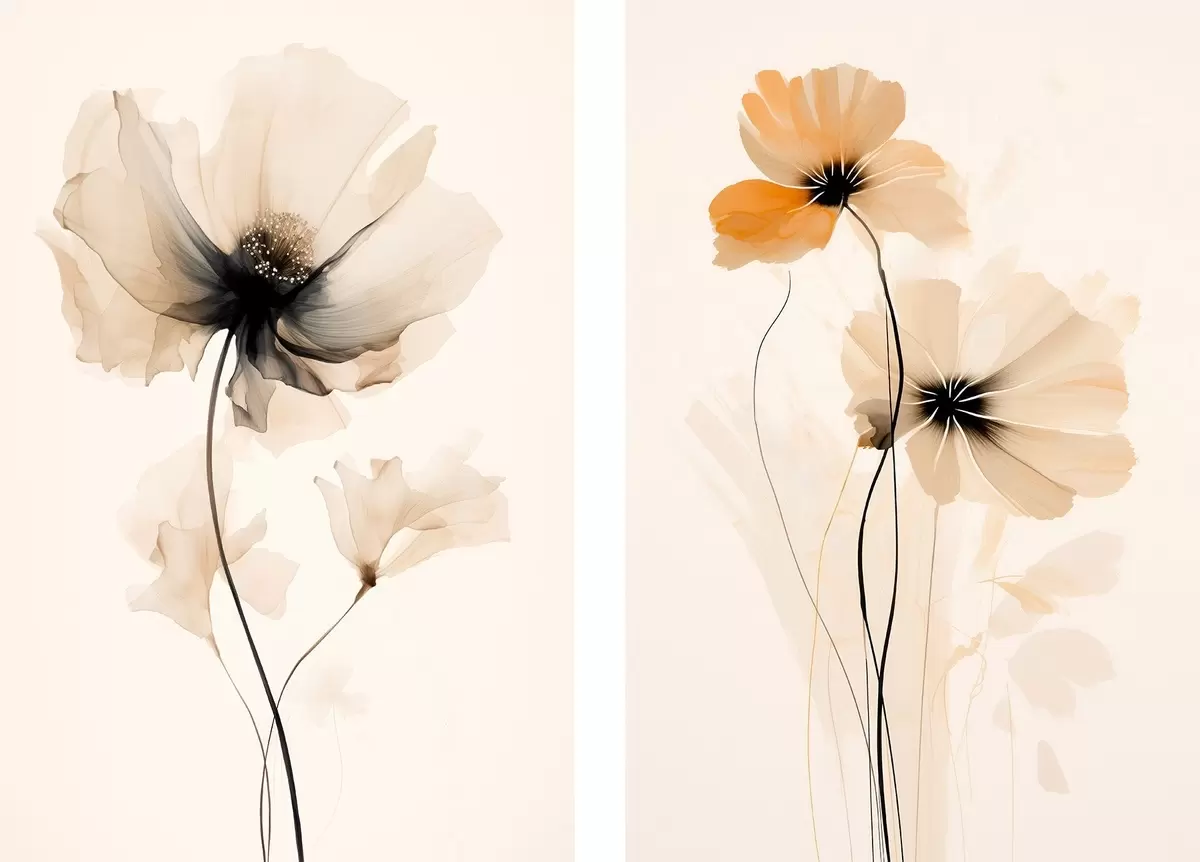 Obraz Světlé akvarelové máky s jemnými stíny a vzdušným prostorem Č. m01091