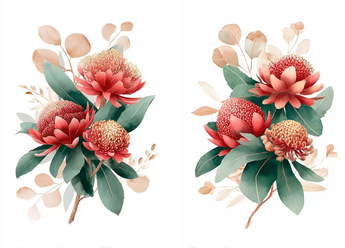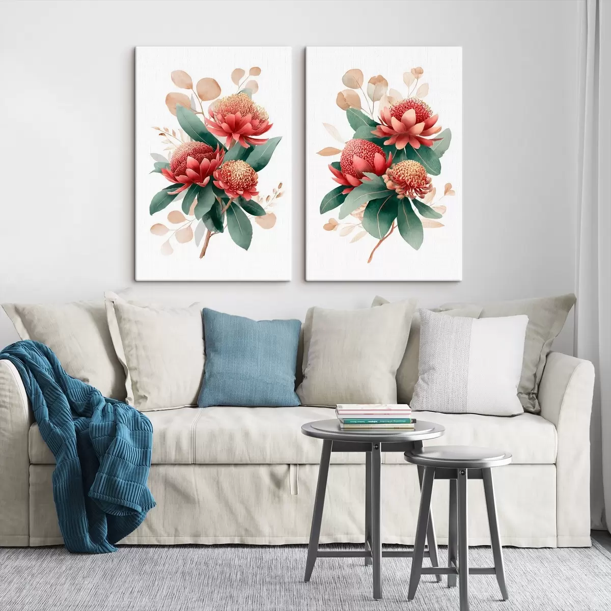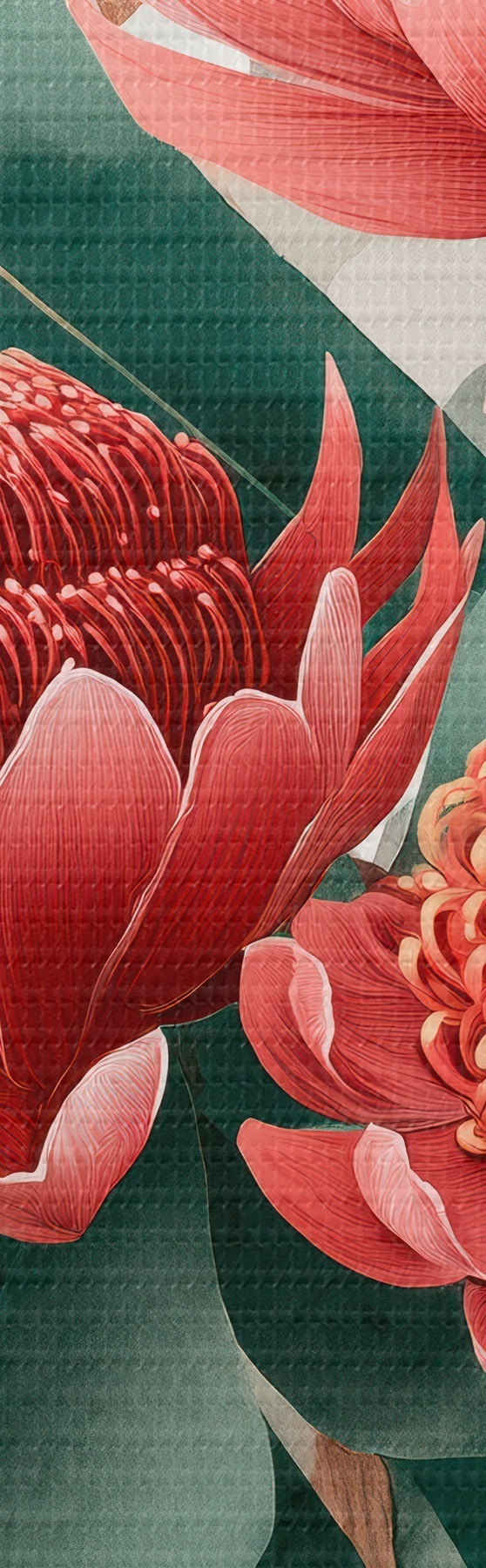 Obraz Květinová kompozice s proteami v korálově červené barvě na bílém pozadí Č. m01096