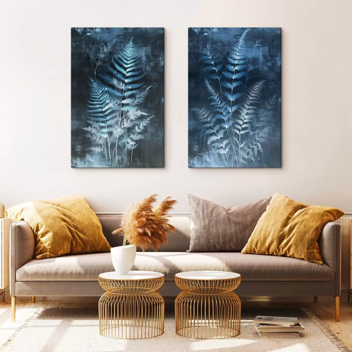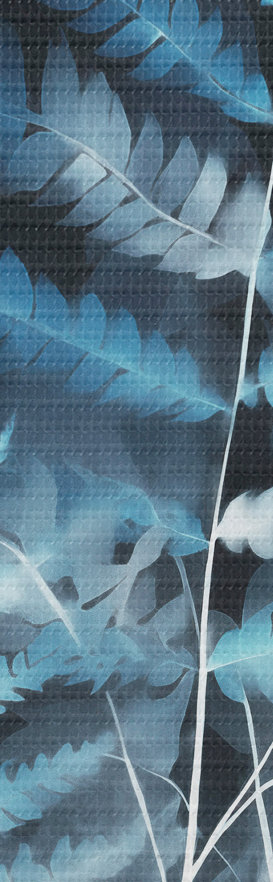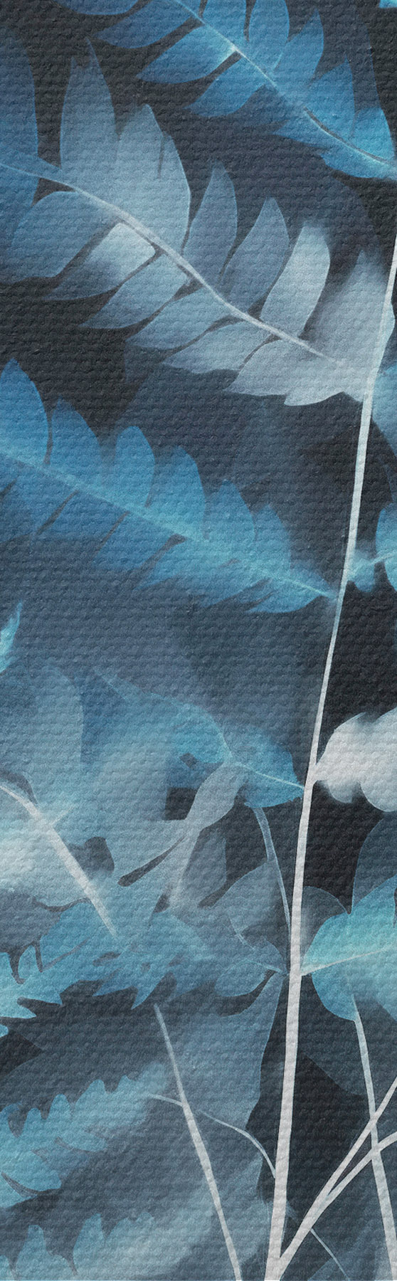 Obraz Modré kapradiny a rostliny na tmavém, strukturovaném pozadí, s důrazem na složité detaily, rentgenový efekt Č. m01121
