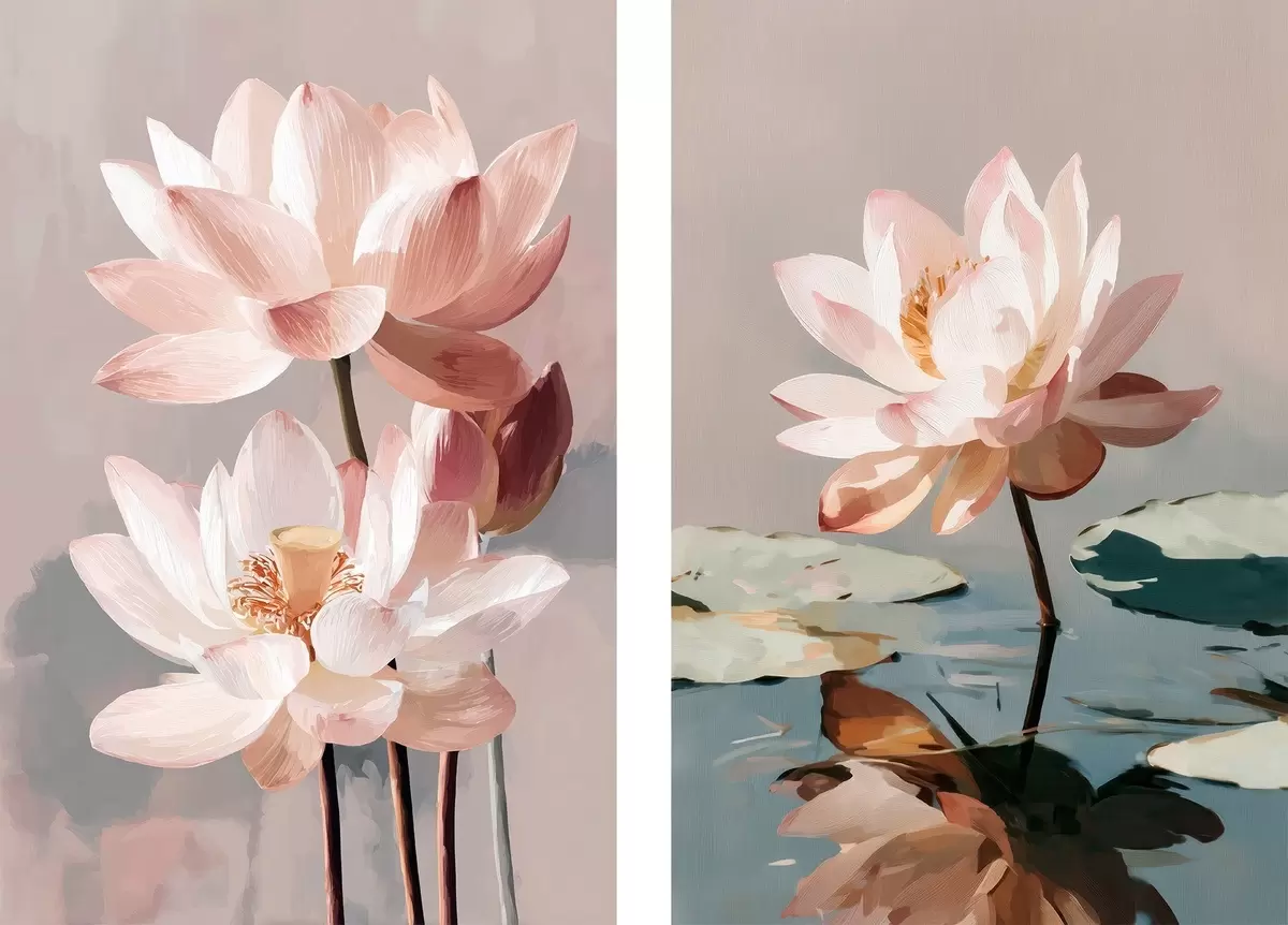Obraz Jemné růžové lotosy v moderním digitálním malířském stylu Č. m01152