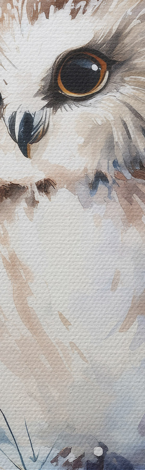 Obraz roztomilá sova na zasněžené borovicové větvi v akvarelovém stylu Č. m01168