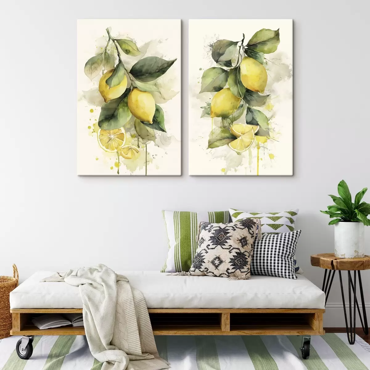 Obraz větev ve stylu akvarelu s citrony Č. m01172