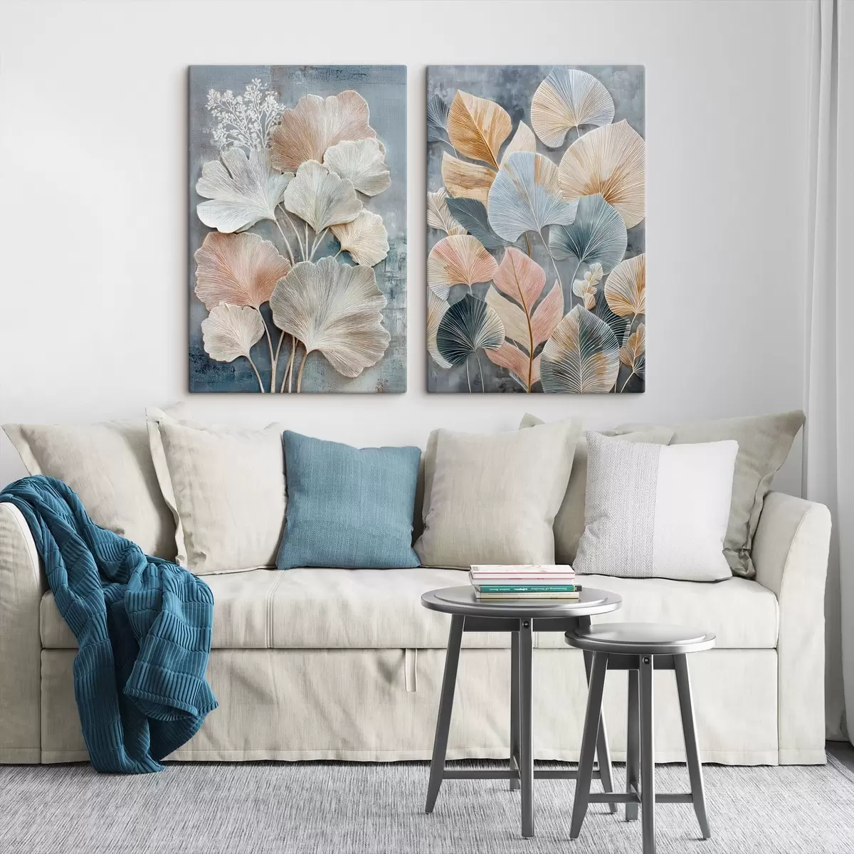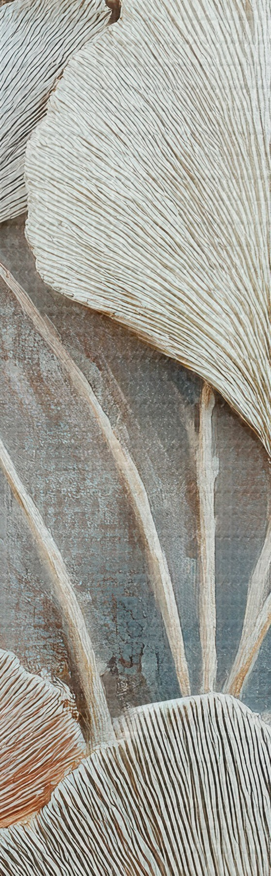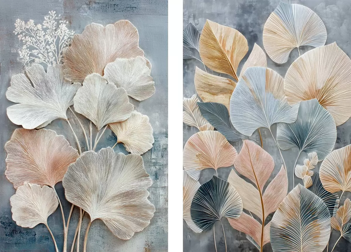 Obraz Abstraktní kompozice s dekorativním listovím v šedo-béžové paletě Č. m30030