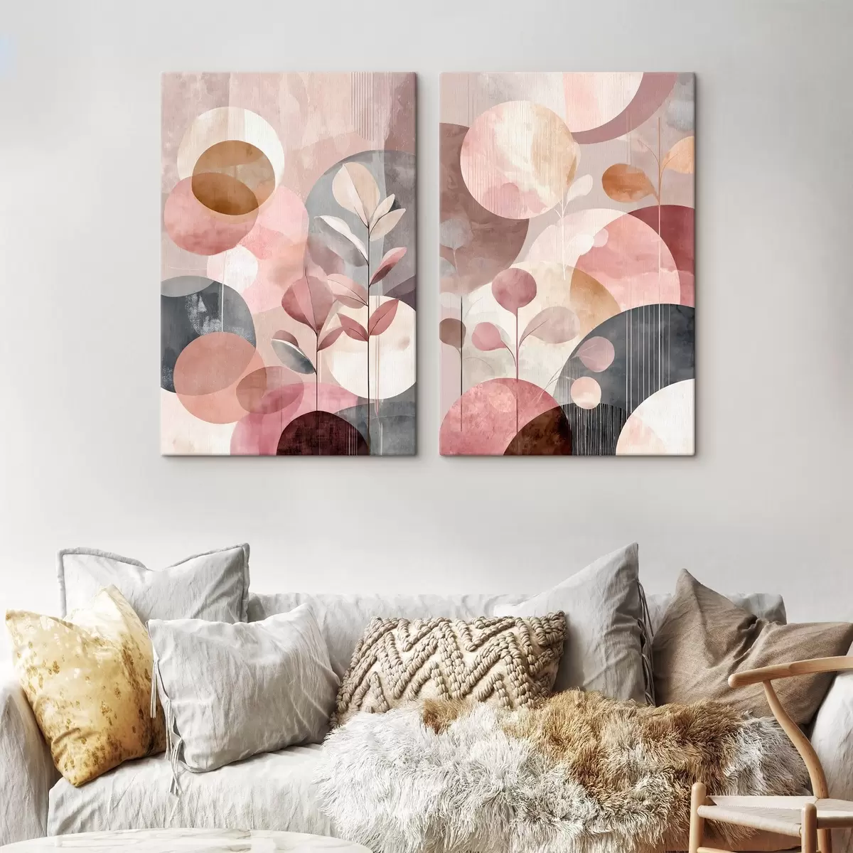 Obraz Květinové umění v pastelových tónech s geometrickými prvky Č. m30036