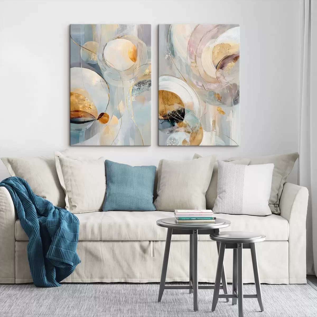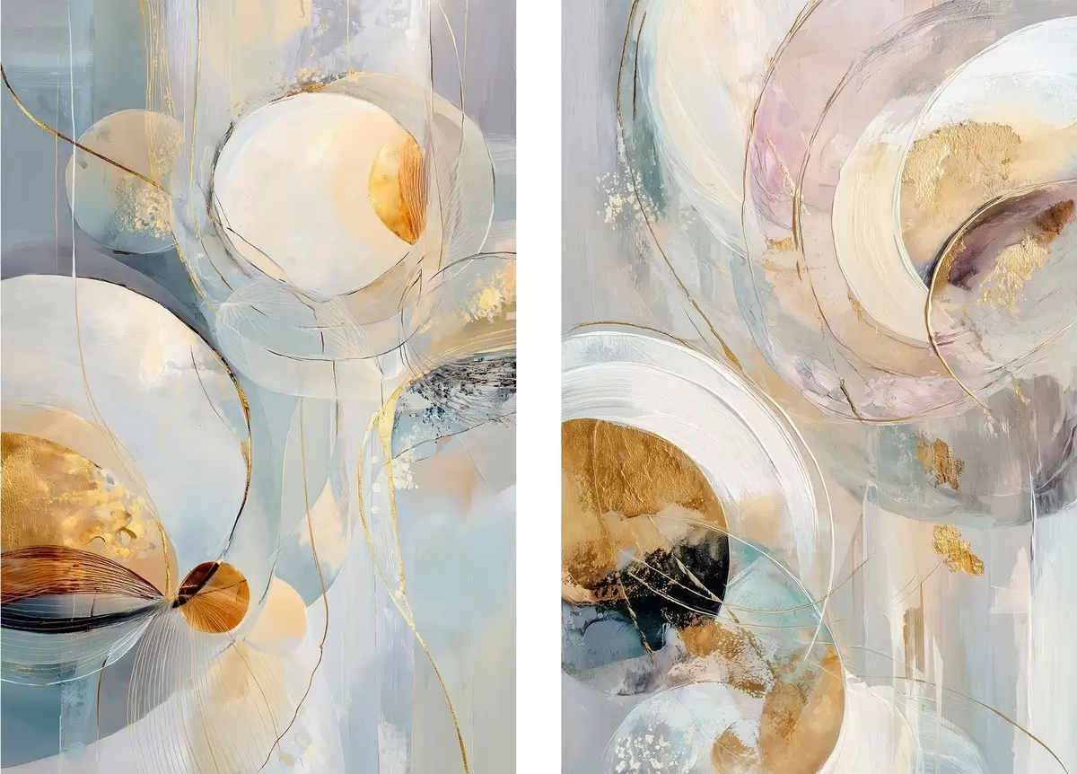 Obraz Umělecký diptych s průsvitnými kruhy a expresivními tahy štětcem Č. m30038
