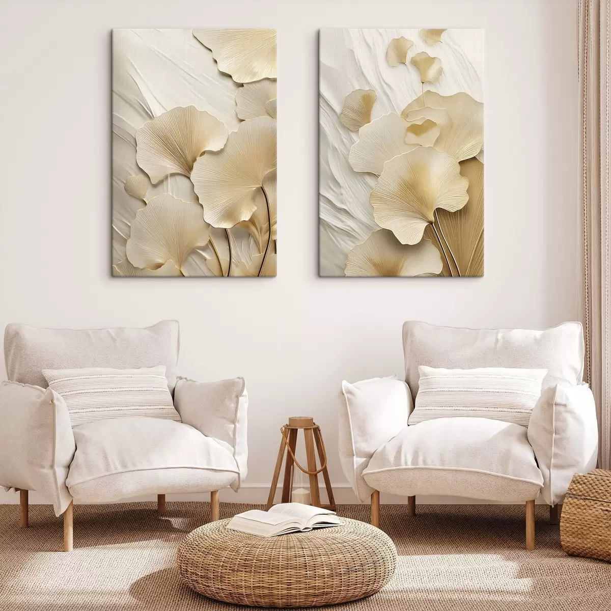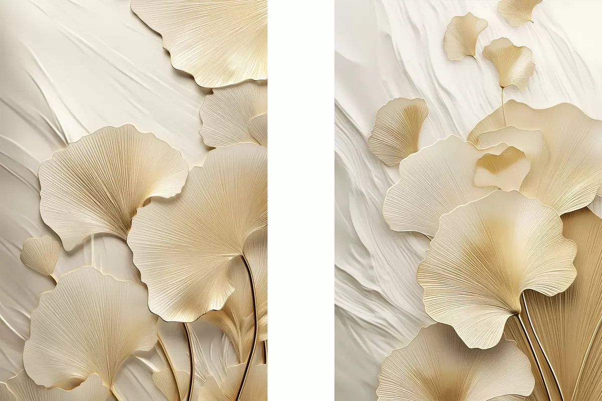 Obraz Abstraktní listy ginkga na texturovaném světlém pozadí, elegantní a abstraktní kompozice Č. m30054