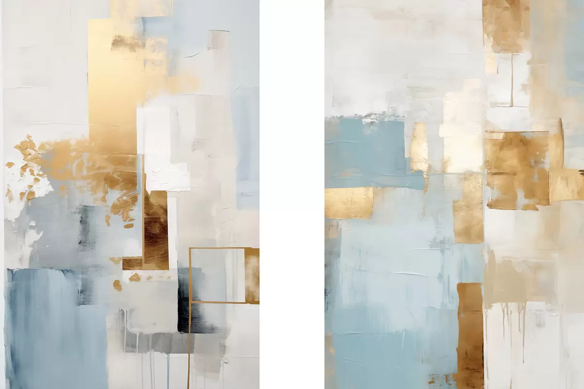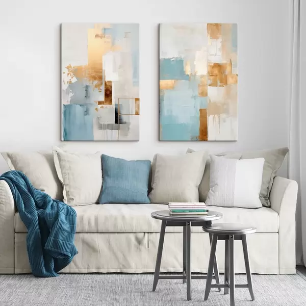 Obraz Abstraktní geometrické tvary v žluté, modré a bílé barvě, strukturovaná a minimalistická kompozice Č. m30061