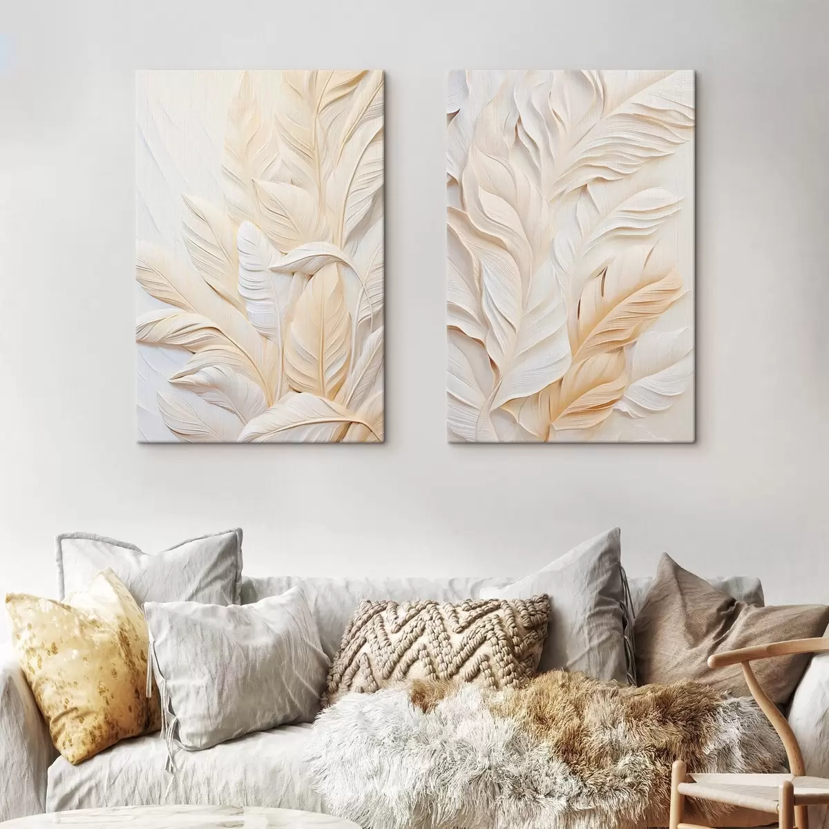 Obraz Krémově zbarvené peří překrývající se navzájem, s jemným, světlým pozadím Č. m30062