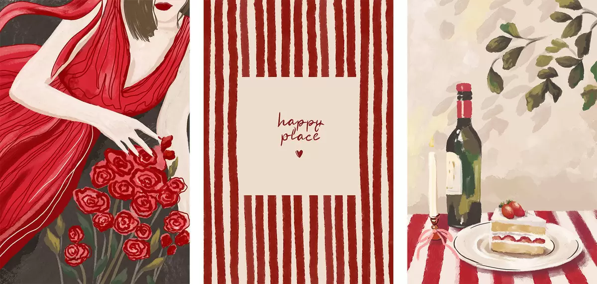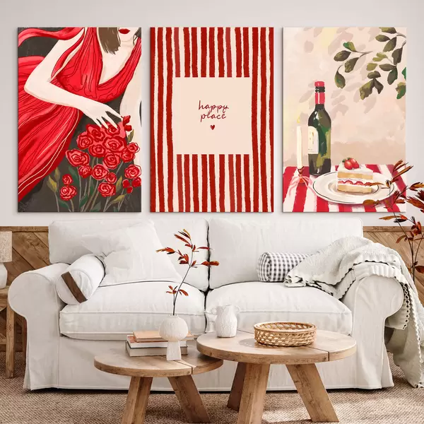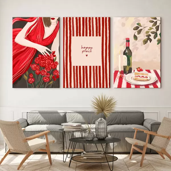 Obraz Žena s růžemi, pruhovaný plakát a stůl Č. m30099
