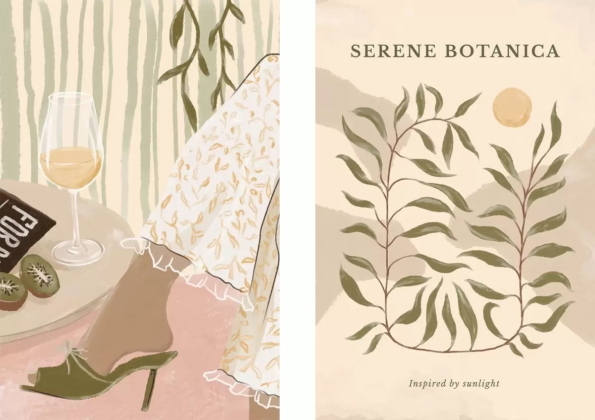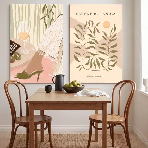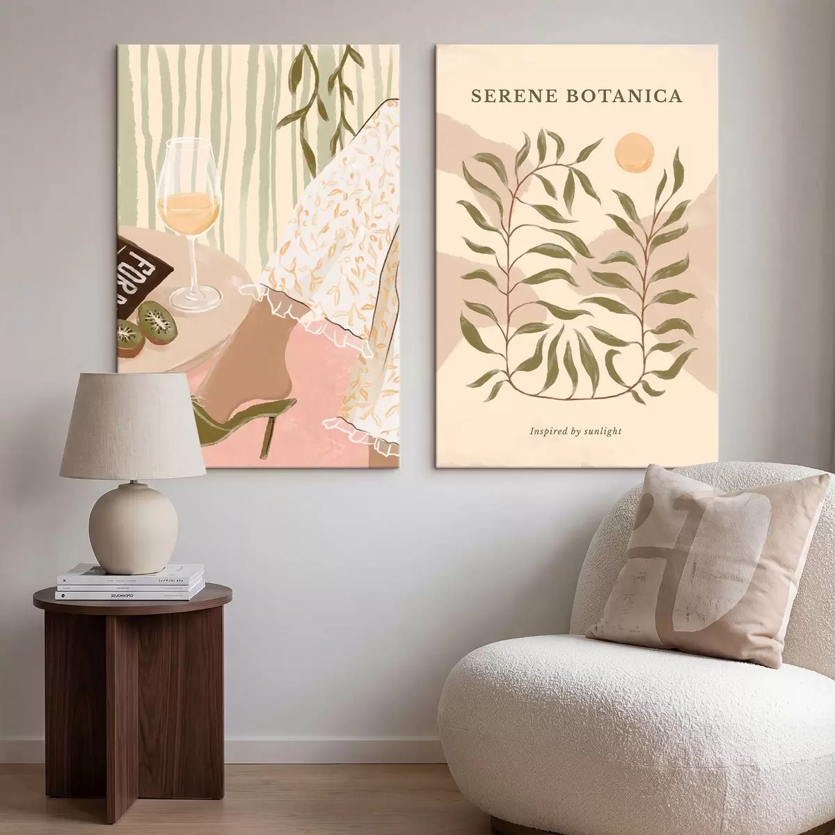 Obraz Sklenice na víno a botanický plakát poblíž Č. m30106
