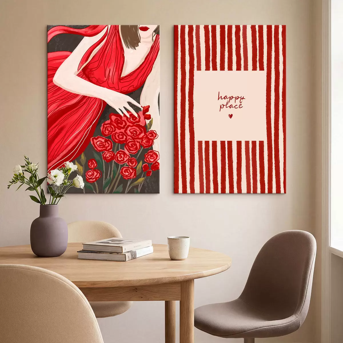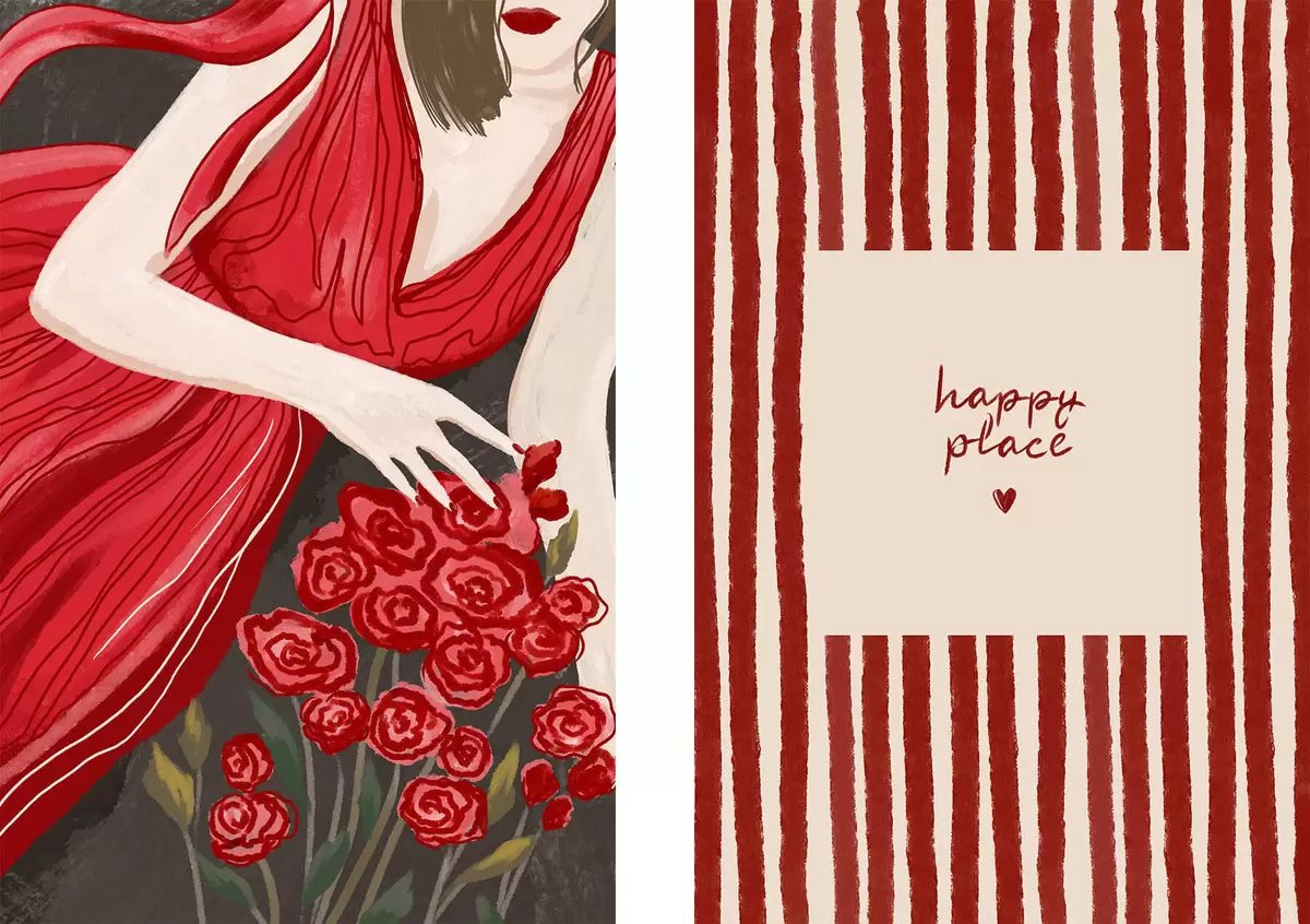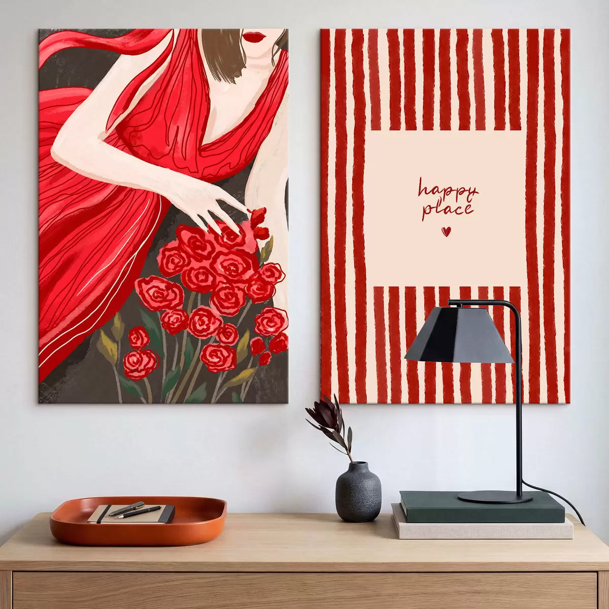 Obraz Žena s růžemi a červeným vzorem Č. m30107