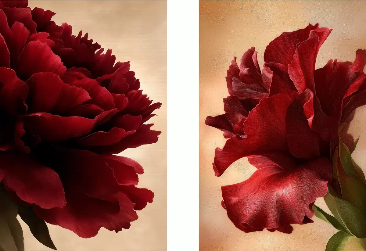 K objednání jsou k dispozici tři typy materiálu: Economic Canvas - hustý a odolný materiál pro digitální tisk, identický s malířským plátnem, voděodolný povrch, realistická reprodukce detailů, středně zrnitý materiál. Prémiové plátno - struktura připomíná malířské plátno (proplétané drobné nitě). Měkká, detailní reprodukce obrazu na matném povrchu. Eco-Premium - vysoce kvalitní tkanina ze 100% bavlny. Díky přírodním bavlněným vláknům je materiál trvanlivý a odolný proti opotřebení. Vynikající reprodukce barev a detailů.