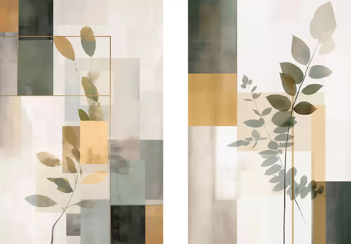 Obraz Geometrická abstrakce s větvemi listů Č. m30128